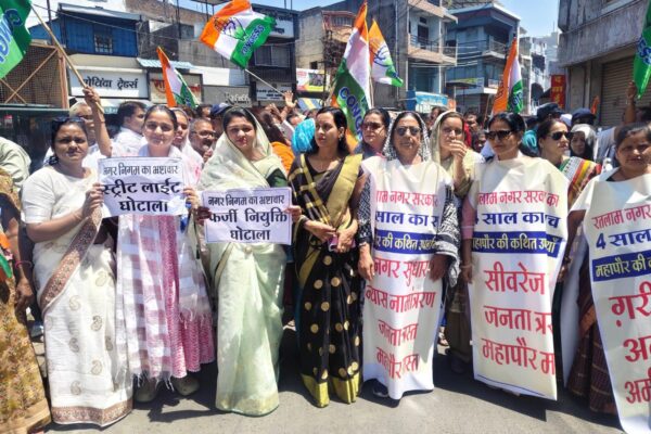 रतलाम में कांग्रेस ने टैक्स बढ़ोतरी और जनविरोधी प्रस्तावों के विरोध में किया प्रदर्शन