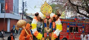 रतलाम (sailana,mp)- जिले के सैलाना नगर से प्रति वर्ष अनुसार इस वर्ष भी नए वर्ष के पहले दिन बुधवार को राजस्थान में स्थित अति प्राचीन होर हनुमान तक विशाल पद यात्रा रवाना हुई। जय जय सियाराम, वीर बजरंगी की गूंज और बैंड-बाजो पर जय जय सियाराम के बजती धुन और ढोल की थाप पर थिरकते कदम केसरिया लिबास पहने हर एक भक्त के मुंह से जय सियाराम की गूंज से पुरा नगर राममय हो गया। नागरिको के साथ छोटे छोटे बच्चे, महिला और बुजुर्गों ने इस पद यात्रा मे भाग लिया। यात्रा में बाहुबली हनुमान आकर्षक का केंद्र बने थे। यह यात्रा करीबन 55 किलो मीटर तय कर के गुरूवार शाम 6 बजे तक राजस्थान के होरी हनुमान तीर्थ स्थल पर पहुंचेगी। यात्रा संयोजक मंगलेश कसेरा ने बताया कि इस यात्रा को 8 वर्ष पूर्ण हो चुके हैं। अब नवें वर्ष में प्रवेश कर रही है। यह धार्मिक यात्रा रात्रि में सुखेड़ा में विश्राम करेगी। यहीं पर यात्रियों का सहभोज भी होगा। अगले दिन गुरुवार को सुबह सुखेड़ा से निकलकर सभी पद यात्री अति प्राचीन होरी हनुमान मंदिर महाराज के मंदिर पहुंचेंगे। कसेरा ने बताया की दरअसल राष्ट्र, प्रदेश व क्षेत्र के हरेक व्यक्ति की सुख समृद्धि की कामना के साथ पिछले कई वर्षों से यह पदयात्रा सैलाना से होरी हनुमान जी तक निकाली जाती है। जय बलवीर व्यायामशाला भोई मोहल्ला के तत्वावधान मे इस विशाल पद यात्रा का आयोजन किया जाता है। जिसमें बड़ी संख्या में भक्तगण हिस्सा लेते हैं। पद यात्रा नगर के ओशिन परिसर से शुरू हुई इस पदयात्रा का नगर में अनेक स्थानों पर पुष्प माला से व पुष्प वर्षा कर भव्य स्वागत किया गया। बस स्टैंड पर प्रेस क्लब अध्यक्ष सुरेश मालवीय, विमल कटारिया, कैलाश परिहार, क्रष्णा राठोर, नितेश राठोड तथा कृष्णकांत मालवीय ने पुष्पहार से स्वागत किया। वही नगर परिषद अध्यक्ष चैतन्य शुक्ला ने पूर्व विधायक हर्ष विजय गेहलोत एवं यात्रा संयोजक मंगलेश कसेरा सहित यात्रा में शामिल धर्मालुओ का पुष्प मालाओं से स्वागत किया। यात्रा का भोई मोहल्ला, बस स्टैङ, सदर बाजार, गणेश मंदिर, पेलेस चौराहा सहित कई स्थानों पर विभिन्न संगठनों ने स्वागत किया। इस अवसर पर जय बलवीर व्यायामशाला के जीवन लाल पडियार, पूरणमल परमार, दिलीप डामोर, विशाल पडियार, निर्मल पडियार, जितेंद्र दया अन्य उपस्थित थे।
