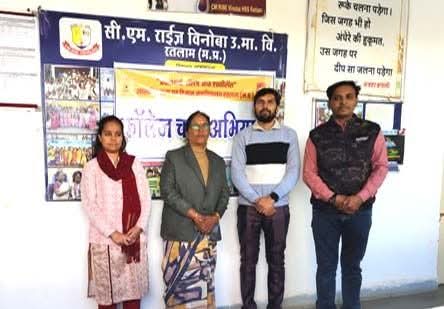 रतलाम (Ratlam,mp)- प्रधानमंत्री कॉलेज ऑफ एक्सीलेन्स के प्राचार्य वाय.के. मिश्र के मार्ग दर्शन मे कॉलेज चलो अभियान चल रहा है। टीम के सदस्य डॉ. रोहित प्रभाकर पाटील, प्रो. नितेश पाठक, प्रो. पूजा परमार ने सीएम राइज स्कूल, विनोबा नगर, अग्रवाल विद्या मंदिर एवं सांई श्री अकॅडेमी रतलाम के 12 वी कक्षा के विद्यार्थीयों को राष्ट्रीय शिक्षा नीति 2020, विभिन्न प्रकार की शिष्यवृत्ती एवं सहायता योजनाओं की जानकारी दी। महाविद्यालय की अन्य सुविधाओ के बारे मे भी बताया गया। विद्यार्थियों को अभिभावकों के साथ महाविद्यालय भ्रमण करने के लिये प्रेरित भी किया। इस दौरान विद्यार्थियों से फीडबैक फॉर्म भरवाए गये। नोडल ऑफिसर डॉ. गोपाल सिंह खराडी को प्रतिवेदन प्रस्तुत किया गया। कॉलेज चलो अभियान 31 जनवरी तक चलेगा।
