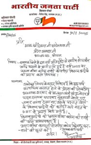 प्रदेश अध्यक्ष खंडेलवाल को एक मांग पत्र जिला महामंत्री बद्रीलाल चौधरी ने सोपा है। जिसमें रतलाम जिले में इस वर्ष अतिवृष्टि से किसान भाइयों की खरीफ की सोयाबीन आदि फसले खराब हुई थी। जिस पर भाजपा के प्रदेश सरकार के मुख्यमंत्री डॉ. मोहन यादव द्वारा राहत राशि प्रदान की गई। उसके बाद अब प्रधानमंत्री फसल बीमा क्लेम राशि स्वीकृत कर किसान भाइयों को अति शीघ्र प्रदाय करने की मांग की गई।
