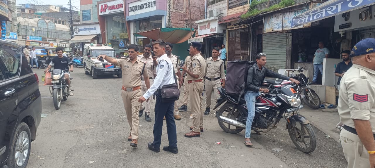 रतलाम- (Ratlam) जिला पुलिस अधीक्षक अमित कुमार (भा.पु.से.), अतिरिक्त पुलिस अधीक्षक राकेश खाखा (रा.पु.से.) उप पुलिस अधीक्षक यातायात आनन्द स्वरुप सोनी के निर्देशन मे यातायात थाना प्रभारी निरीक्षक निलम चौंगड हमराह सूबेदार अनोखीलाल परमार, प्रआर.222 धीरेन्द्र कुमार दीक्षित ,आर.1052 भगतसिह, आर.759 नरेन्द्र चोरे व पुलिस लाईन के फोर्स द्वारा संयुक्त रुप से विशेष अभीयान के तहत शहर रतलाम में यातायात को सुगम व सूचारु बनाने के लिए मंगलवार को सैलाना बस, शहर शराय, रानी जी मंदिर, गणेश देवरी, नोलाईपुरा, चोमुकीपुल, चांदनी चौक, तोपखाना, हरदेवलाला की पिपली, आबकारी चौराह, शहीद चौक तक पेदल पेट्रोलिंग कर यातायात व्यवस्था की गई।
