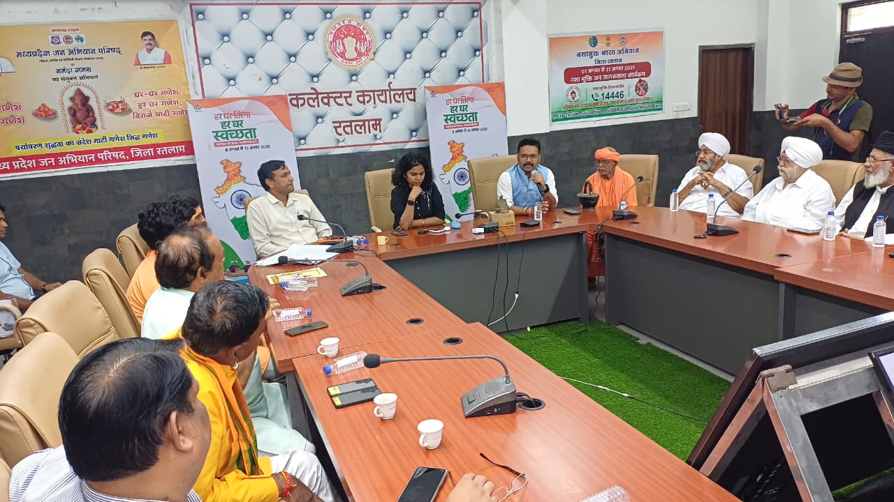 रतलाम- (Ratlam) 79 वें स्वतंत्रता दिवस के अवसर पर ’हर घर तिरंगा, हर घर स्वच्छता स्वतंत्रता का उत्सव, स्वच्छता के संग, अभियान के तहत धर्म गुरूओं, स्वैच्छिक संगठनों की बैठक कलेक्ट्रेट सभागृह रतलाम में आयोजित की गई।