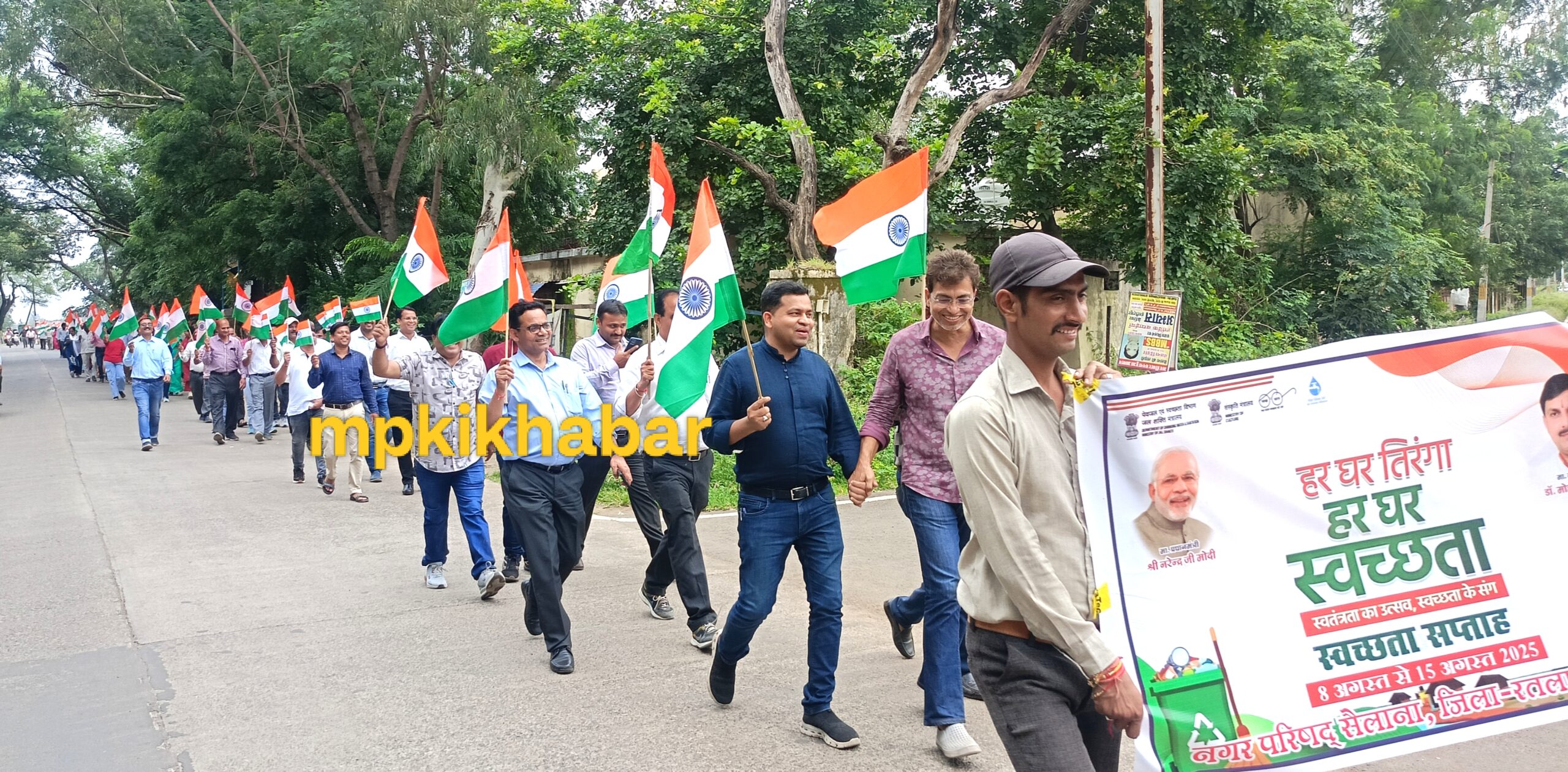 रतलाम- (Ratlam) इस वर्ष 79 वें स्वतंत्रता दिवस के अवसर पर 8 अगस्त से 15 अगस्त तक चलाये जा रहे ‘‘हर घर तिरंगा, हर घर स्वच्छता का उत्सव, स्वच्छता के संग‘‘ अभियान के तहत मंगलवार को जिले के सैलाना नगर के सान्दीपनि उत्कृष्ट उ.मा.वि विद्यालय से हर घर तिरंगा अभियान के अंतर्गत एसडीएम मनीष जैन की उपस्थिति में तिरंगा रैली का आयोजन किया गया।