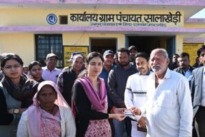 ‘‘प्रशासन गांव की ओर अभियान’’ के तहत कलेक्टर मिशा सिंह एवं सीईओ जिला पंचायत वैशाली जैन प्रशासनिक अमले के साथ ग्रामीण क्षेत्रों में पहुंची। उन्होंने ग्राम सालाखेड़ी पंचायत स्तर पर आयोजित प्रशासन गांव की ओर अभियान के दौरान आम जन से चर्चा की। ग्रामीण जनों ने बताया कि ग्राम में स्वामित्व योजना के ऑनलाइन पोर्टल में नक्शे की स्थिति अव्यवस्थित होने के कारण नामांतरण होने में समस्या हो रही है। कलेक्टर ने मामले में राजस्व अधिकारियों को राज्य स्तर से समस्या का निराकरण करवाने के निर्देश दिए। ग्राम में नाली निर्माण की प्रशासकीय और तकनीकी स्वीकृति प्राप्त होने के आधार पर काम चालू करने के निर्देश सचिव को दिए। उन्होंने कहा कि दीवारों पर निर्माण कार्य की लंबाई चौड़ाई एवं स्वीकृति आदि की तारीख चस्पा करें।