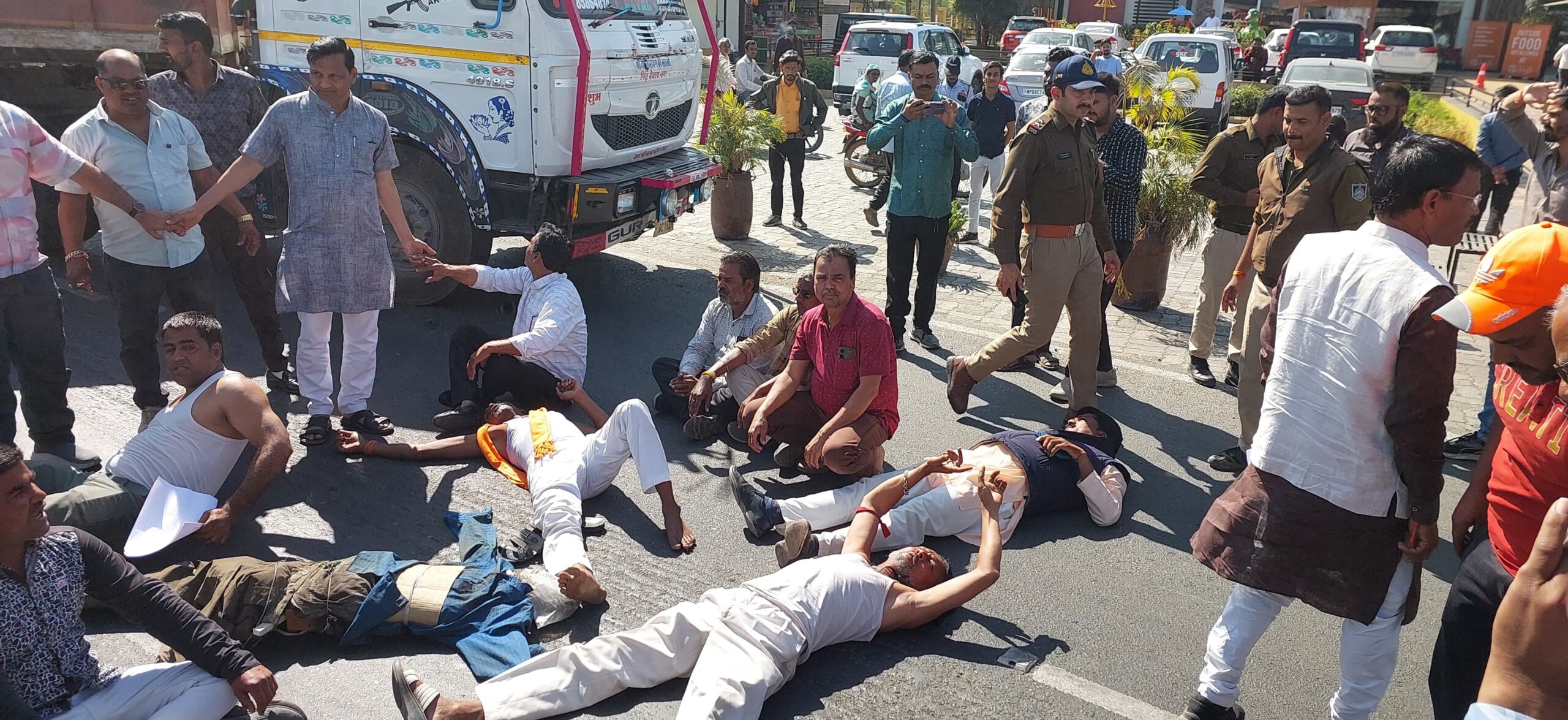 बुधवार को जावरा-उज्जैन के बीच प्रस्तावित ग्रीनफील्ड एक्सेस कंट्रोल्ड फोरलेन पर दोपहर 2 बजे महु-नीमच हाइवे पर अर्धनग्न होकर धरने पर बैठते नजर आए। यह विरोध करीब 2 घंटे तक चलता रहा। जिसमें प्रशासन और संघर्ष समिति के सदस्यों के बीच काफी नोकझोंक होती दिखाई दी। वही प्रशासन ने समिति के सदस्यों को 8 दिन का समय दिया है। उसके बाद सदस्यों ने धरना समाप्त किया।