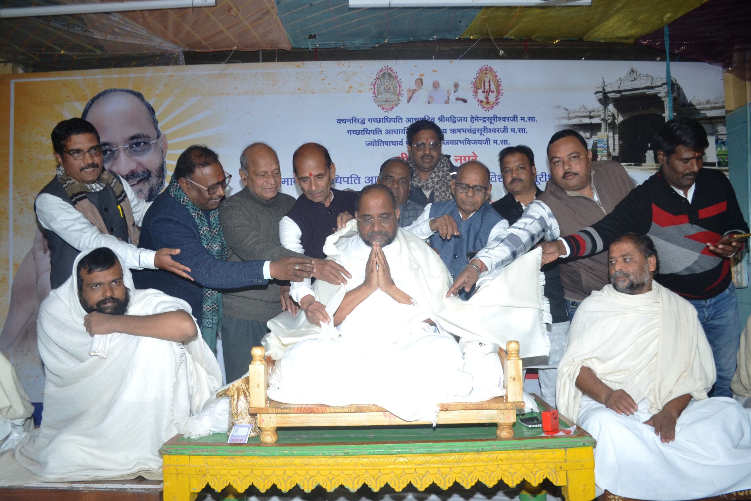 रतलाम (Ratlam,mp)- जैन श्वेतांबर सोधर्म वृहत्त तपागच्छीय राजेंद्रसुरिश्वर त्रिस्तुतिक श्रीसंघ द्वारा नीमवाला उपाश्रय खेरादीवास में सोमवार को आचार्य देवेश श्रीमद्विजय हेमेंद्र सुरिश्वर, आचार्य देवेश श्रीमद्विजय, आचार्य देवेश श्रीमद्विजय हितेशचंद्र सुरिश्वर, मुनिराज दिव्यचंद्रविजय, पुष्पेंद्रविजय, रूपेंद्रविजय, वैराग्ययश विजय आदि ठाणा 5 का मंगल प्रवेश हुआ।