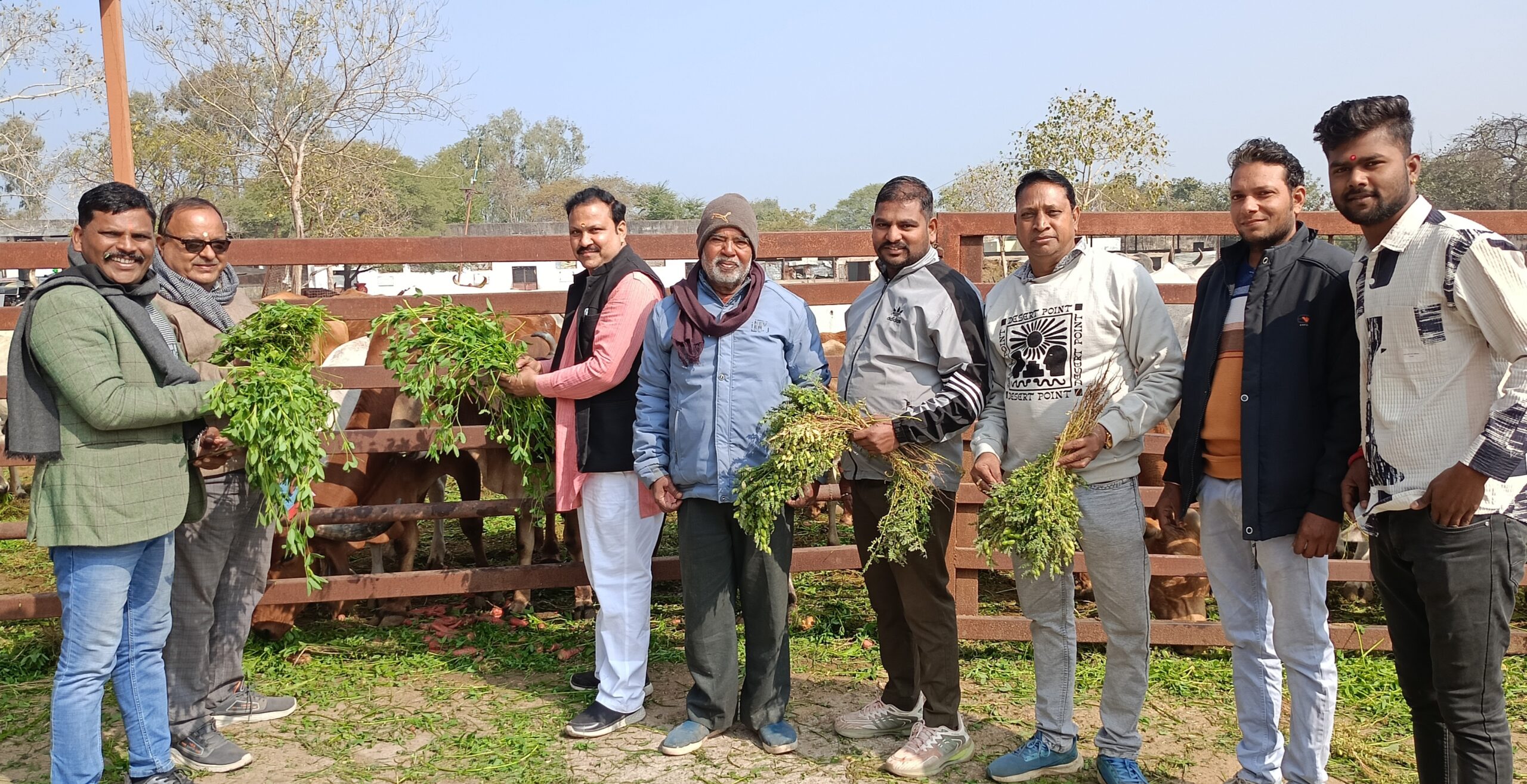 मकर संक्रांति पर लोगों ने गौशाला पहुचकर गायों को खिलाई लापसी व हरा चारा