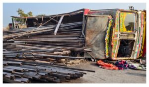 मिली जानकारी के अनुसार रतलाम-बांसवाड़ा मार्ग स्थित कल्याण केदारेश्वर घाट पर मंगलवार दोपहर 4 बजे लोहे के पाइप से भरा ओवरलोड ट्रक (आरजे 03 171) पलटी खा गया। गनीमत रही कि जब ट्रक पलटा तब कोई वाहन वहां से नही गुजरा था, वरना बड़ा हादसा हो जाता था।सैलाना थाना पुलिस ने मामला जांच में लिया है। ट्रक छत्तीसगढ़ के रायपुर से राजस्थान के बांसवाड़ा के घाटोल जा रहा था। ट्रक में करीब 14 टन लोहे के पाइप भरे हुए थे। ट्रक मोड़ पर पलटने के दौरान असंतुलित होने से पलट गया। पलटी खाने से सारे पाइप सड़क पर आ गए। ट्रक के कांच भी फूट गए। हादसे के बाद सैलाना थाने के एसआई आरपी सारस्वत, एएसआई हितेंद्रसिंह परिहार पहुंचे।पुलिस ने ड्रायवर समेत क्लीनर को ट्रक का कांच तोड़कर बाहर निकाला। दोनों को पुलिस की गाड़ी से स्वास्थ्य केंद्र भिजवाया। हादसे में ड्राईवर अर्जुन पिता अमोल सकलेचा, क्लीनर ऋतिक पिता जीवन परमार दोनों निवासी लालाखेड़ी (महिदपुर) को हल्की चोंटे आई है। जिनका सैलाना के सामुदायिक स्वास्थ्य केंद्र में इलाज दिया जा रहा है।