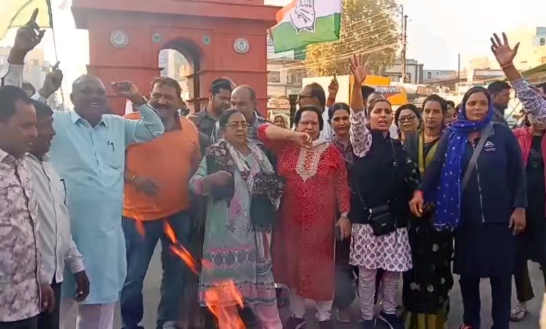 रतलाम में मंत्री शाह का विरोध प्रदर्शन कर शहर महिला कांग्रेस ने जलाया पुतला