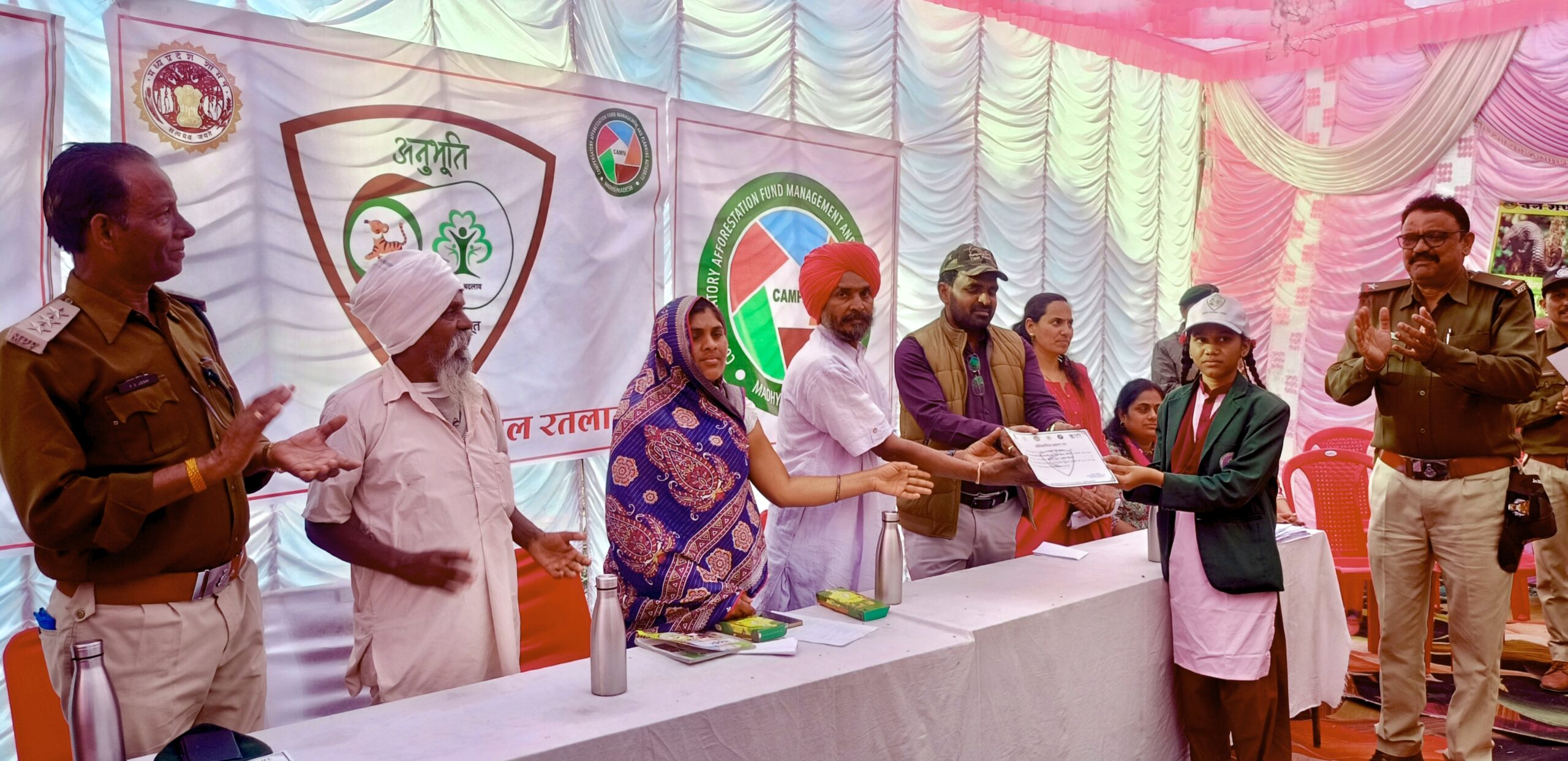 सैलाना वन विभाग के केक्टस ईको गार्डन में आयोजित कार्यक्रम में उपहार पाकर विद्यार्थियों के खिले चेहरे