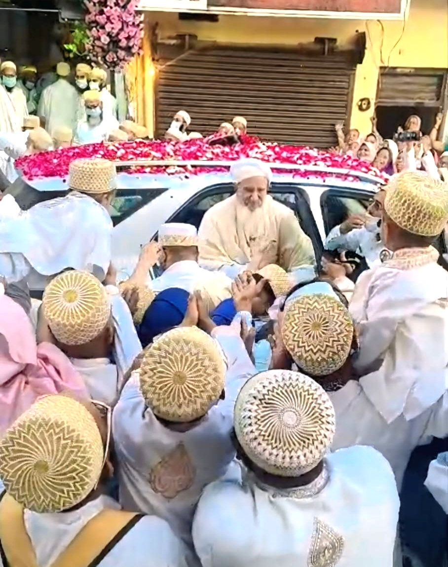 सैलाना नगर में सोमवार को बोहरा समाज के 53 वें धर्मगुरु की पलक पावड़े बिछाकर की आगवानी