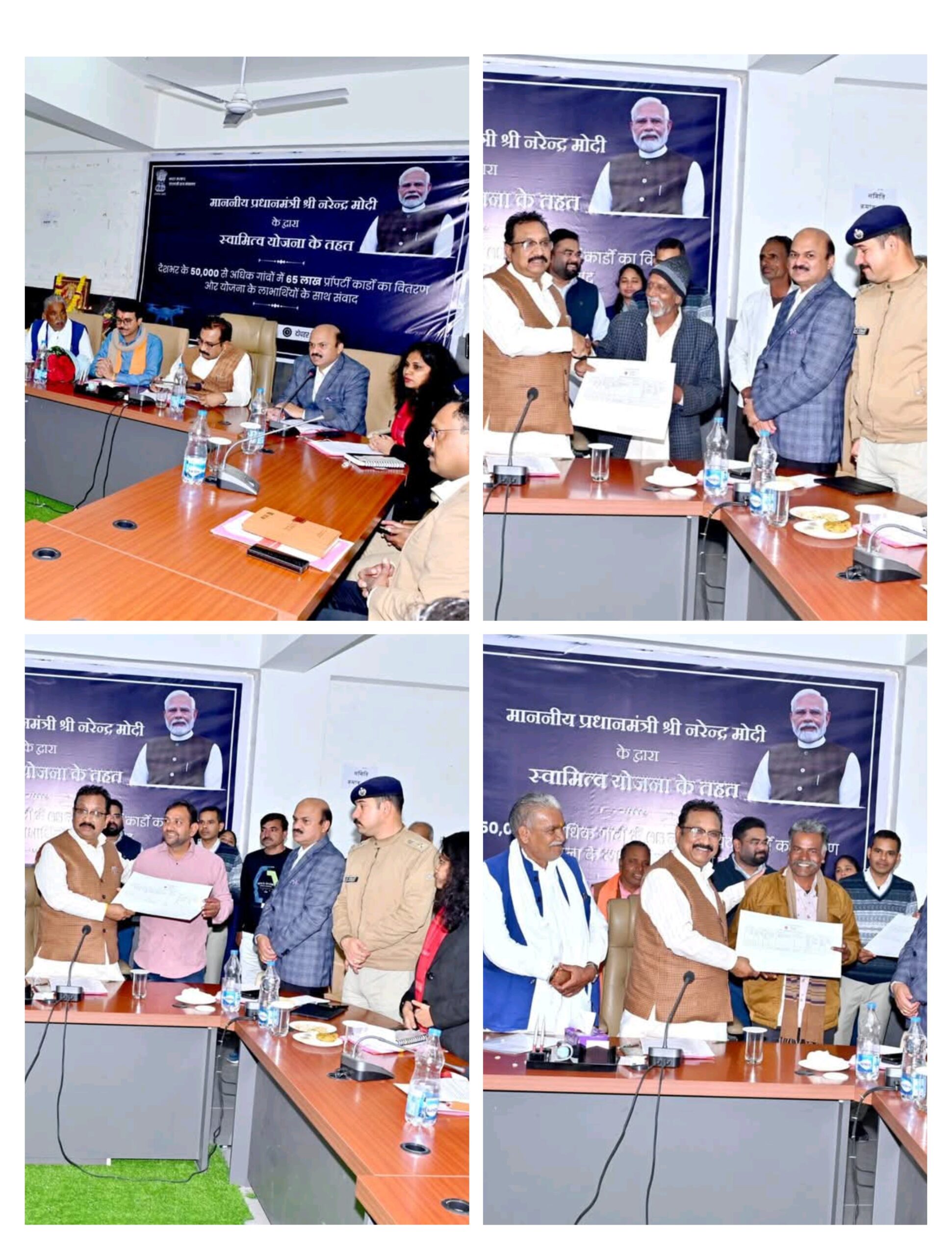कार्यक्रम में रतलाम ग्रामीण विधायक मथुरालाल डामोर, जिला भाजपा अध्यक्ष प्रदीप उपाध्याय, विप्लव जैन, रतलाम महापौर प्रहलाद पटेल, निगम अध्यक्ष मनीषा शर्मा, जिला कलेक्टर राजेश बाथम, एसपी अमित कुमार, अतिरिक्त कलेक्टर डॉ. शालिनी श्रीवास्तव, अतिरिक्त पुलिस अधीक्षक राकेश खाखा, डिप्टी कलेक्टर संजय शर्मा, श्री प्रवीण सोनी तथा हितग्राही उपस्थित थे। इस अवसर पर प्रभारी मंत्री डा. कुंवर विजय शाह ने कहा कि स्वामित्व योजना अंतर्गत हितग्राहियों को अधिकार अभिलेख मिल जाने से उनकी संपत्ति के मूल्य में वृद्धि हो गई है। अब उनको बैंकों से ऋण सहायता मिल सकती है। शासकीय योजनाओं का लाभ प्राप्त करने में कोई दिक्कत नहीं आएगी, हितग्राहियों का सम्मान बढ़ जाएगा। प्रारंभ में कलेक्टर द्वारा स्वागत उद्बोधन में रतलाम जिले में स्वामित्व योजना क्रियान्वयन के संबंध में अवगत कराया गया। कलेक्टर ने बताया कि रतलाम जिले में योजना अंतर्गत ड्रोन तकनीक का उपयोग करके आबादी भूमि का सर्वेक्षण कर निवासियों को स्वामित्व अधिकार के साथ संपत्ति कार्ड, मालिकाना दस्तावेज प्रदान किए जा रहे हैं। अब तक जिले के 664 ग्रामों में 1 लाख 52 हजार 392 हितग्राहियों को आबादी भूमि में निर्मित मकान के भूखंडों के अधिकार अभिलेख उपलब्ध करवा दिए गए हैं।उपरोक्त समस्त ग्रामों के अधिकार अभिलेख वेब जीआईएस पोर्टल पर ऑनलाइन उपलब्ध करवा दिए गए हैं। कार्यक्रम में प्रभारी मंत्री डॉ. कुमार विजय शाह द्वारा ग्राम इटावाकला के राकेश जैन, धर्मेंद्र सिंह, सालाखेड़ी के महावीर सिंह चौहान, भंवर सिंह राजपूत, कालूखेड़ी के बसंती लाल पाटीदार, गोवर्धनलाल पाटीदार, मांगरोल के जितेंद्र राठौड, खाराखेड़ी के राजाराम, मांगरोल के मोतीलाल पाटीदार, संगीता पाटीदार, कोलवाखेड़ी के पूनमचंद तथा अमलेटा के वीरेंद्र राठौड़ को स्वामित्व योजना अंतर्गत अधिकार अभिलेख प्रदान किए गए।