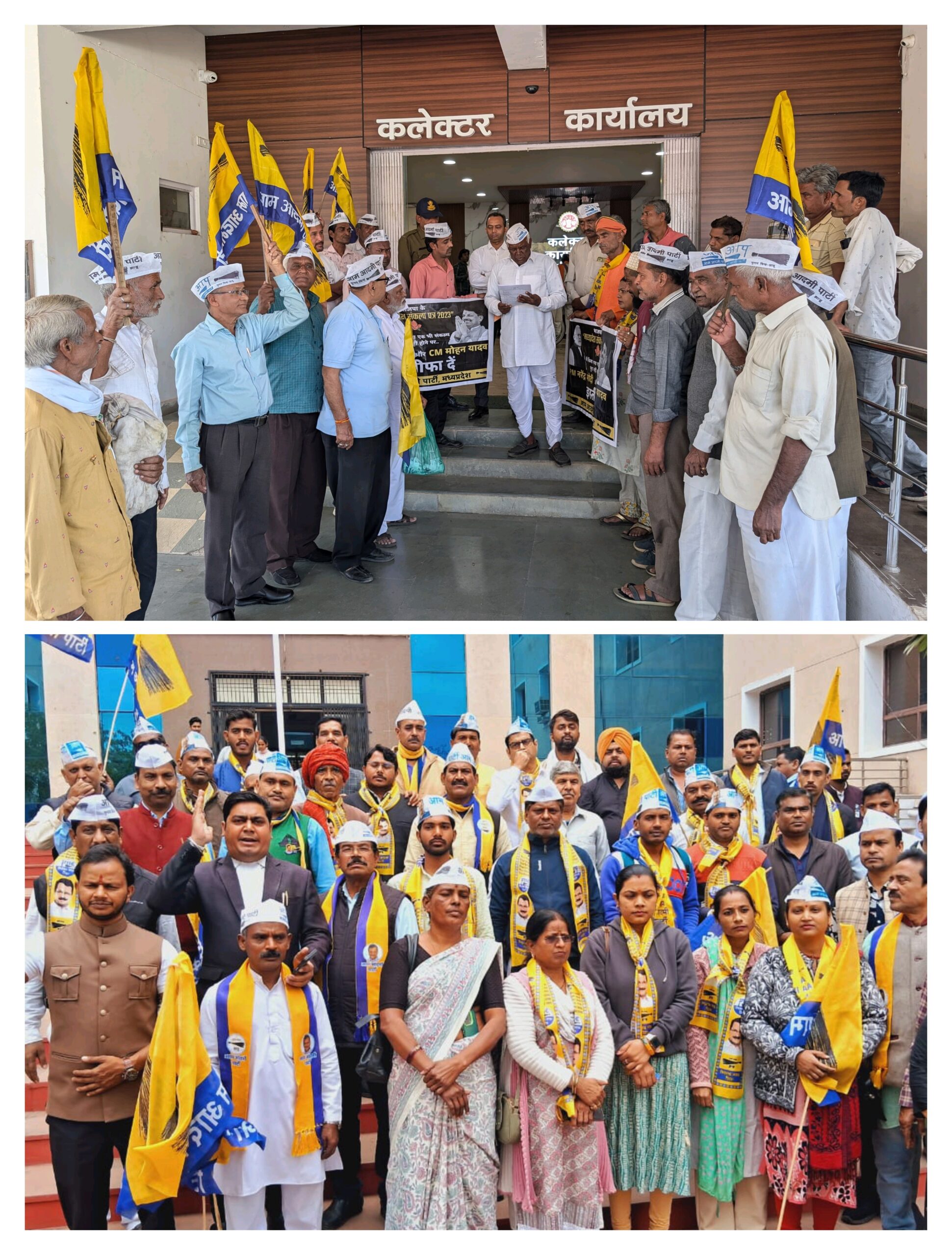 आम आदमी पार्टी ने अपने प्रदेश व्यापै आंदोलन के तहत प्रदेश के सभी जिला मुख्यालयों पर किसानो के समर्थन में गेंहू और धान का क्रमश 3000 रूपये एवं 3100 रूपये प्रति किवंटल का मूल्य किसानो को देने की मांग के साथ जंगी विरोध प्रदर्शन कर मुख्यमंत्री डाक्टर मोहन यादव के नाम एक ज्ञापन सौंपा एवं मांग की की तुरंत किसानो को वादे अनुसार मूल्य दिया जावे अन्यथा आम आदमी पार्टी को अग्र आंदोलन करना पड़ेगा।