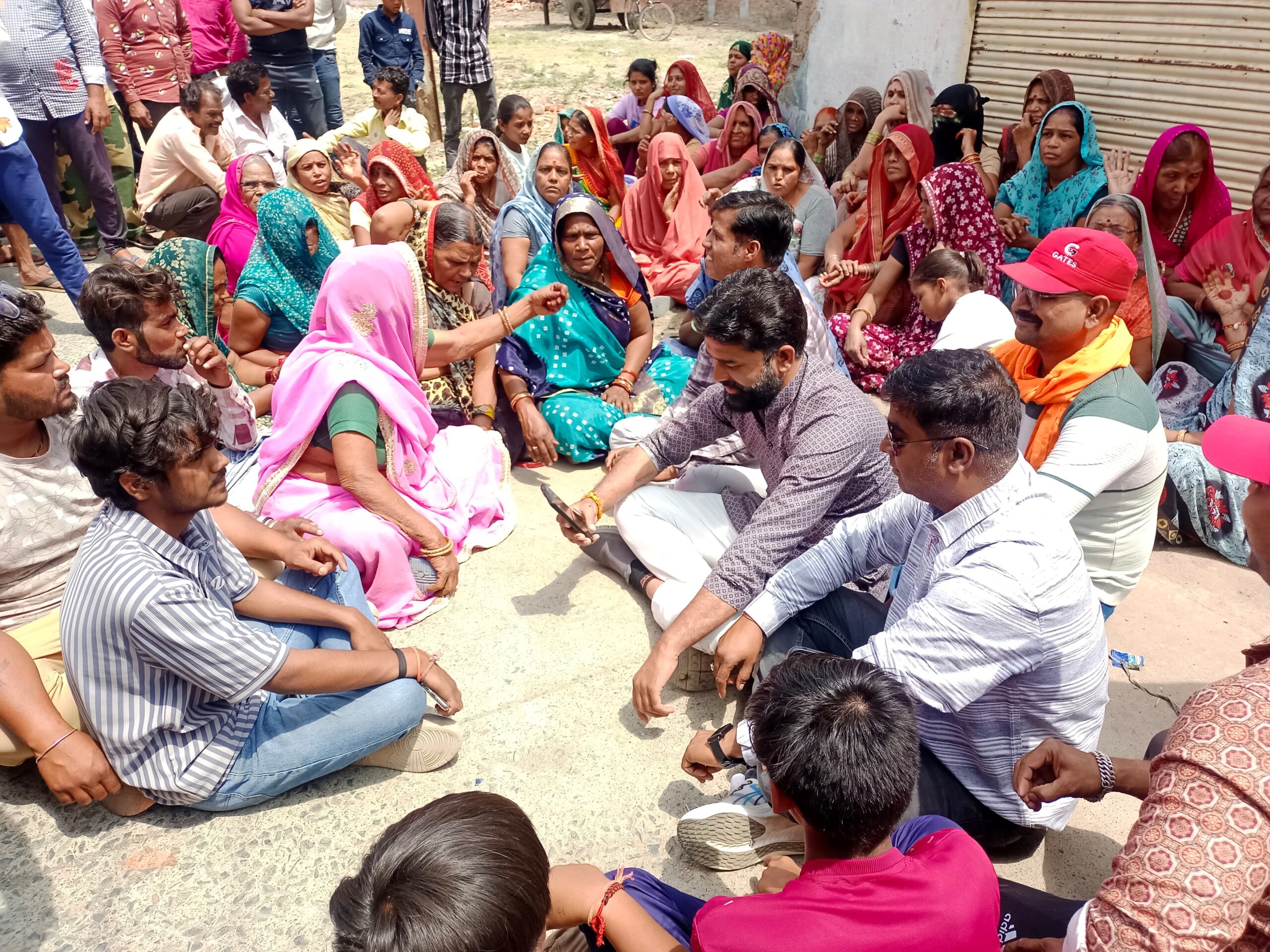 जावरा शहर मे शराब की दुकान के सामने बैठकर दिया धरना
