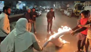 दूषित पानी से मौतों पर रतलाम में युवा कांग्रेस ने मंत्री कैलाश विजयवर्गीय का फूंका पुतला
