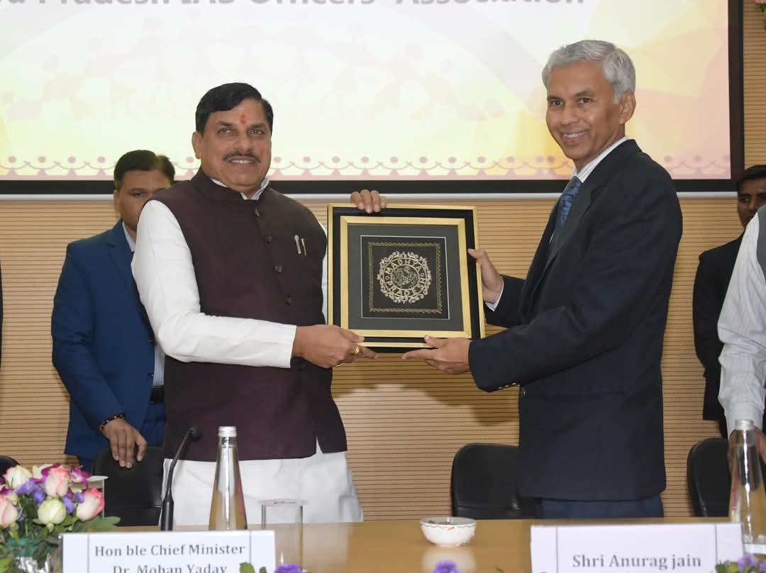 भोपाल (mp)- मध्यप्रदेश के मुख्यमंत्री डॉ. मोहन यादव ने प्रशासन अकादमी, भोपाल में आई.ए.एस.ऑफिसर्स एसोसिएशन द्वारा आयोजित सिविल सर्विस मीट के शुभारंभ कर कार्यक्रम को संबोधित किया। इसी दौरान सीएस अनुराग जैन ने मुख्यमंत्री डॉक्टर मोहन यादव को स्मृति चिन्ह भेंट की।