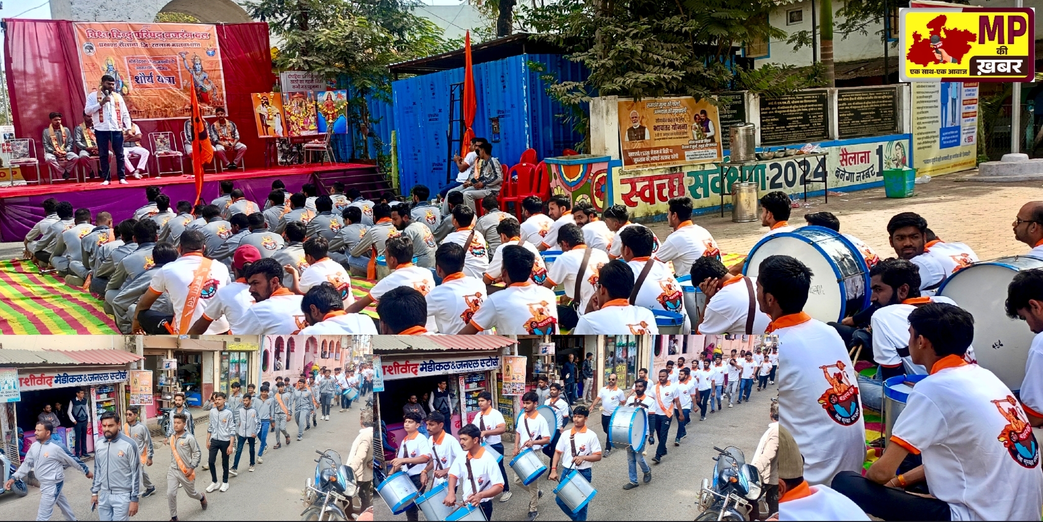 रतलाम- (Ratlam) रविवार को विश्व हिंदू परिषद एवं बजरंग दल प्रखंड सैलाना के तत्वावधान में नगर के घटां घर चैराहा चैतन्य हनुमान मंदिर के समीप शौर्य दिवस गीता जयंती के अवसर पर नगर में शौर्य संचलन निकाला गया।