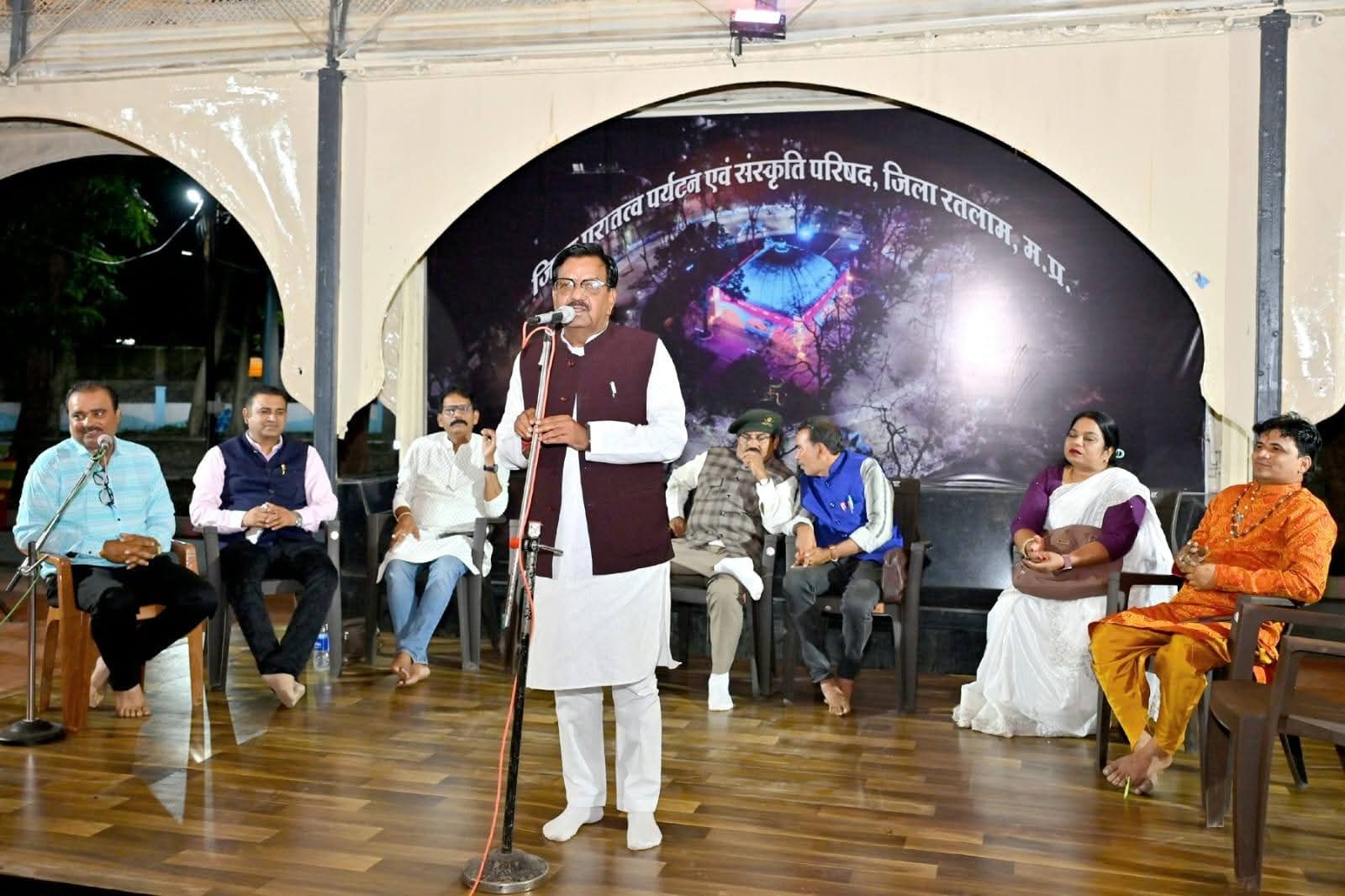 रतलाम- (Ratlam) पुरातत्व पर्यटन एवं पर्यावरण परिषद रतलाम द्वारा सुसज्जित गुलाब चक्कर में आम नागरिक के मनोरंजन के लिए हो रहे गीत संगीत एवं सांस्कृतिक कार्यक्रमों की कड़ी में शनिवार को हास्य कवि सम्मेलन आयोजित किया गया।