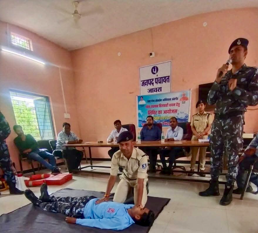 जिसमें वोलेंटियर्स को हवाई हमले के दौरान बचाव कार्य, ब्लैकआउट के दौरान बरती जाने वाली सावधानियां, नागरिक सुरक्षा की 12 महत्वपूर्ण सेवाओं की जानकारी, घायलों को एक स्थान से दूसरे स्थान पर ले जाने की विधि, आग की जानकारी एवं प्रथमोपचार, सीपीआर, रक्त बहाव को रोकना ऊंचे भवन से घायल को नीचे उतारने के तरीके आदि विषयों के संबंध मे प्रशिक्षण दिया गया। उक्त प्रशिक्षण प्लाटून कमाण्डर श्री ज्योति बघेल SDERF द्वारा वोलेंटियर को दिया गया। आपदा प्रबंधन प्रशिक्षण म एसडीएम जावरा, तहसीलदार जावरा, जनपद सीईओ तथा 150 सिविल डिफेंस वोलेंटियर मौजूद रहे।
