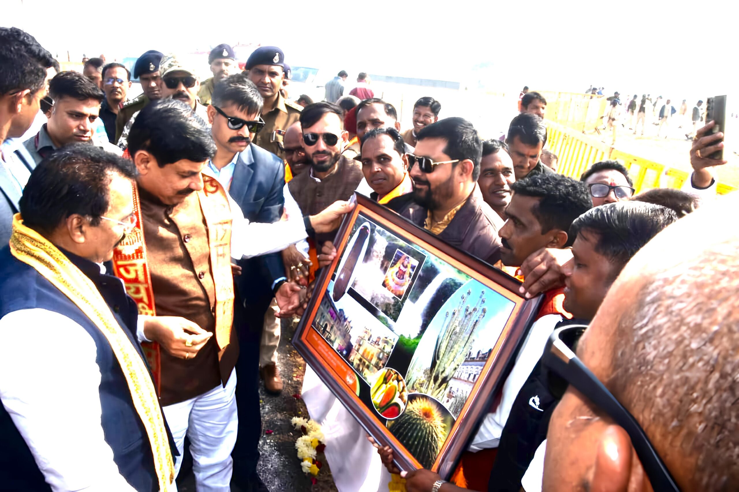 रतलाम (sailana, mp)- मध्मुयप्रदेश के मुख्यमंत्री डॉ. मोहन यादव का शनिवार को रतलाम दौरे के दौरान सीएम डाक्टर यादव का रतलाम के बंजलि हवाई पट्टी आगमन पर रतलाम जिले के सैलाना विधानसभा क्षेत्र के पाचो मण्डल अध्यक्षों पंकज राठौर, भैरु सिंह निनामा, महेंद्र जाट, कैलाश झोड़ियां, नरेंद्र वसुनिया ने सैलाना क्षेत्र की धरोहर का चित्र भेंट कर आत्मीयता के साथ स्वागत-अभिनंदन किया। इस दौरान सैलाना के भाजपा कार्यकर्ताओं आदि ने मुख्यमंत्री का स्वागत किया।