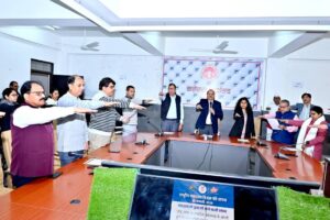 राष्ट्रीय मतदाता दिवस के उपलक्ष में रतलाम जिला कलेक्टर कार्यालय सभाकक्ष में शुक्रवार को उपस्थित अधिकारियों, कर्मचारियों को मतदाता दिवस की शपथ दिलाई। इस दौरान उप जिला निर्वाचन अधिकारी अपर कलेक्टर डॉ. शालिनी श्रीवास्तव भी उपस्थित रही।