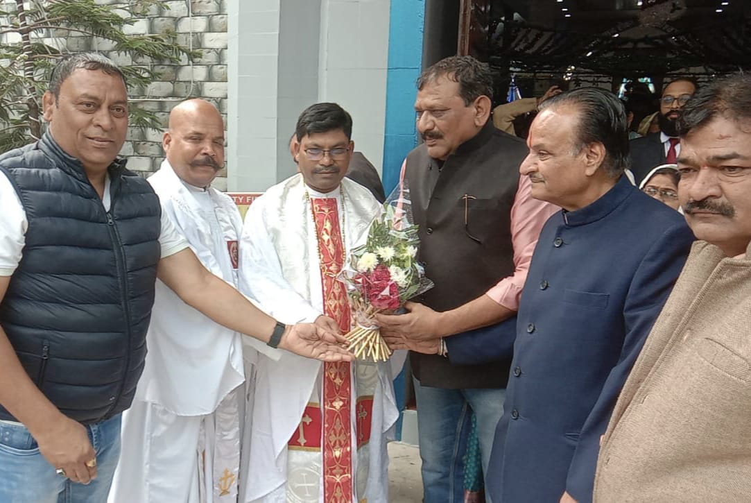 रतलाम (Ratlam,mp)- प्रभु यीशु मसीह के जन्मोत्सव सेवा, त्याग, प्रेम, करुणा के पर्याय क्रिसमस पर्व पर शहर कांग्रेस कमेटी द्वारा फर्स्ट चर्च पर पहुंचकर फादर सैमसन दास एवं समाज जनों को बधाई एवं शुभकामनाएं दी। इस अवसर पर शहर कांग्रेस कमेटी अध्यक्ष महेंद्र कटारिया, पूर्व उप महापौर सतीश पुरोहित, कार्यकारी अध्यक्ष फैयाज मंसूरी, महामंत्री राजीव रावत, ब्लॉक कांग्रेस कमेटी अध्यक्ष बसंत पंड्या उपस्थित रहे।