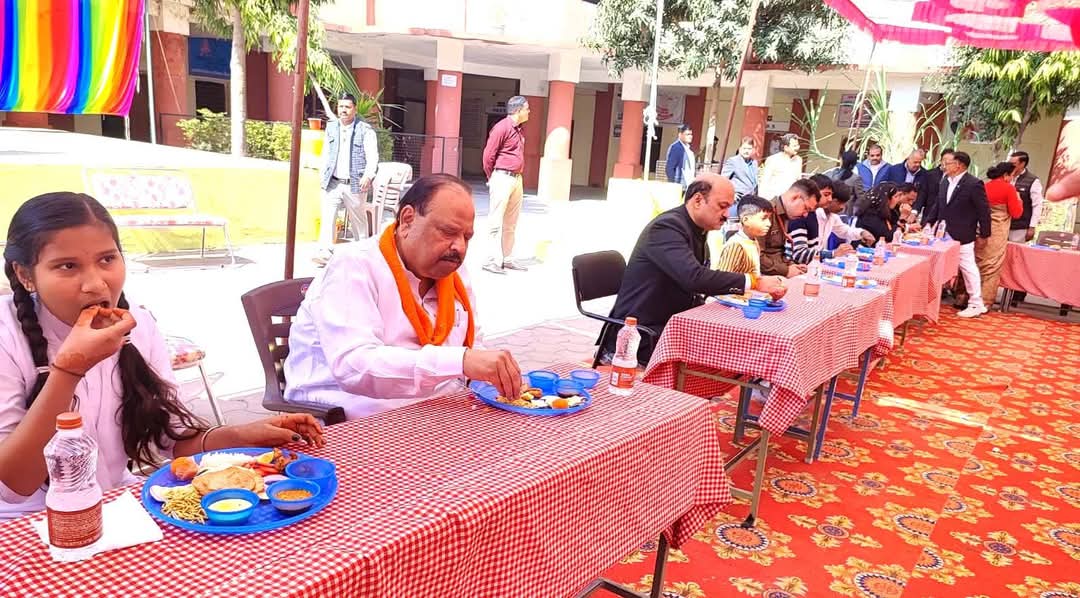 मंत्री काश्यप स्कूली बच्चों के साथ मध्यान्ह भोजन में हुए शामिल