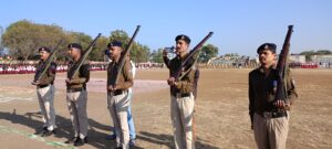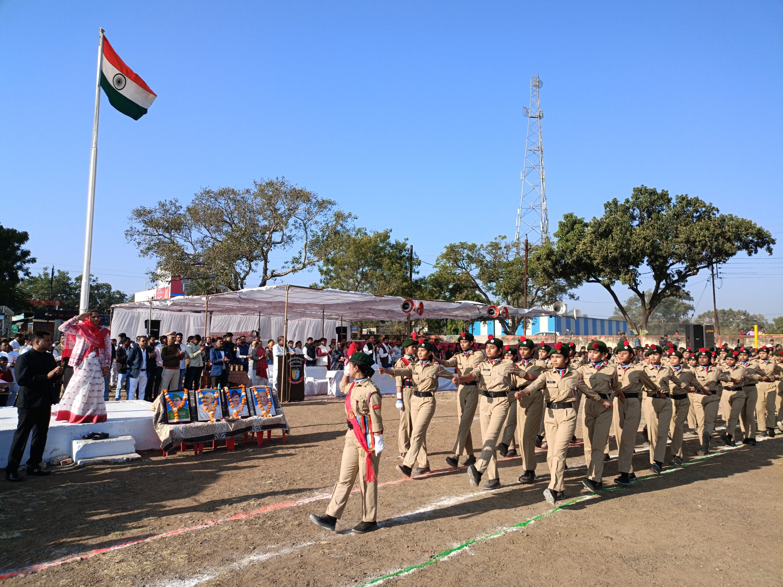 ध्वजारोहण के बाद राष्ट्र गान गाया तथा मार्च फास्ट की सलामी ली। सभी अतिथियों ने एनसीसी के साथ परेड निरिक्षण किया।