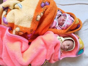 बच्चों का जन्म 29 सप्ताह में समय पूर्व हुआ। जिसके कारण दोनों बच्चों को अत्यधिक कम वजन, शाक एवं सांस लेने के समस्या के साथ नवजात शिशु गहन चिकित्सा इकाई में भर्ती किया गया। भर्ती के समय एक शिशु का वजन मात्र 960 ग्राम तथा दूसरे शिशु का वजन 1200 था।