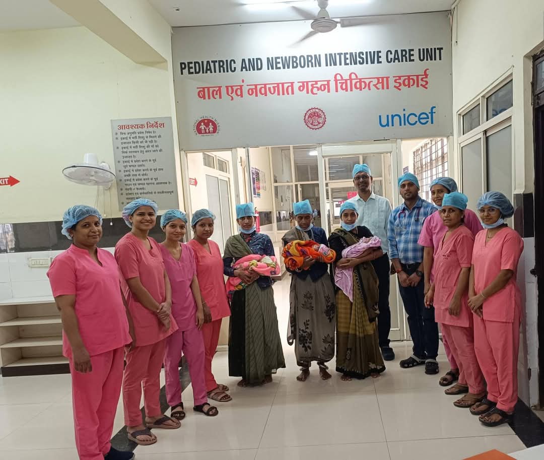 नवजात शिशुओं का सिविल सर्जन डा. एम.एस. सागर के मार्ग दर्शन में प्रभारी चिकित्सा अधिकारी डा.ए.पी. सिंह, शिशु रोग विशेषज्ञ के नेतृत्व में एसएनसीयु की टीम के डा. अरविन्द परमार, डा. सोनू कुशवाह, डा. रोहित पाटीदार एवं नर्सिंग आफिसर भारती गेहलोत द्वारा फेसिलिटि बेस्ड नियोनेटल केयर अनुसार उपचार किया गया। बच्चों को भर्ती करके आक्सीजन प्रदान किया गया।