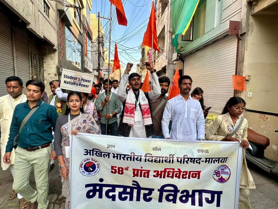 रतलाम में विद्यार्थी परिषद का प्रांत अधिवेशन: राष्ट्रभक्ति के रंग में रंगी भव्य शोभायात्रा