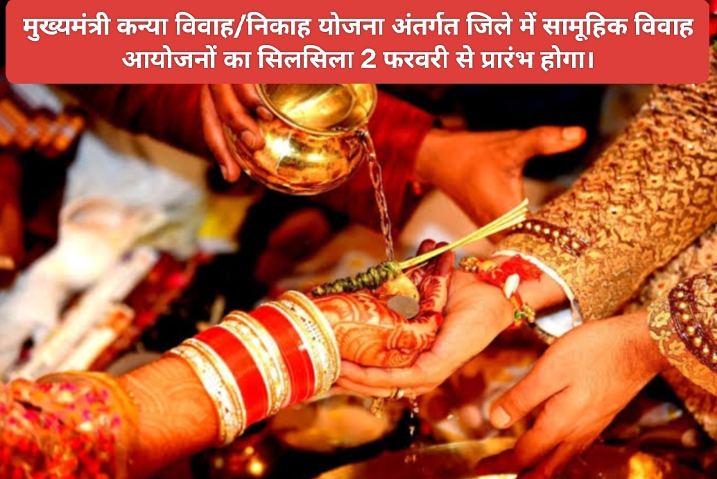 मुख्यमंत्री कन्या विवाह/निकाह योजना अंतर्गत जिले में सामूहिक विवाह आयोजनों का सिलसिला 2 फरवरी से प्रारंभ होगा
