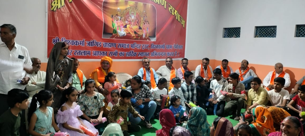रतलाम- (Ratlam) श्री विश्वकर्मा धाम मंदिर नेमीनाथ नगर रतलाम पर जांगिड़ ब्राह्मण मारवाड़ा समाज रतलाम की गोठ का आयोजन मंदिर ट्रस्ट समिति द्वारा किया गया। समाज के बारह वरिष्ठजनों के साथ 25 बच्चों का सम्मान किया गया। वही स्नेह भोज का आयोजन किया।