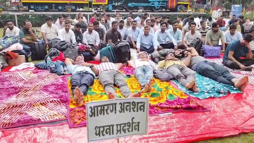 DRM ऑफिस के समक्ष धरने और अनशन पर बैठे लोको पायलट का संघर्ष जारी, दो की तबियत बिगड़ी अस्पताल में भर्ती