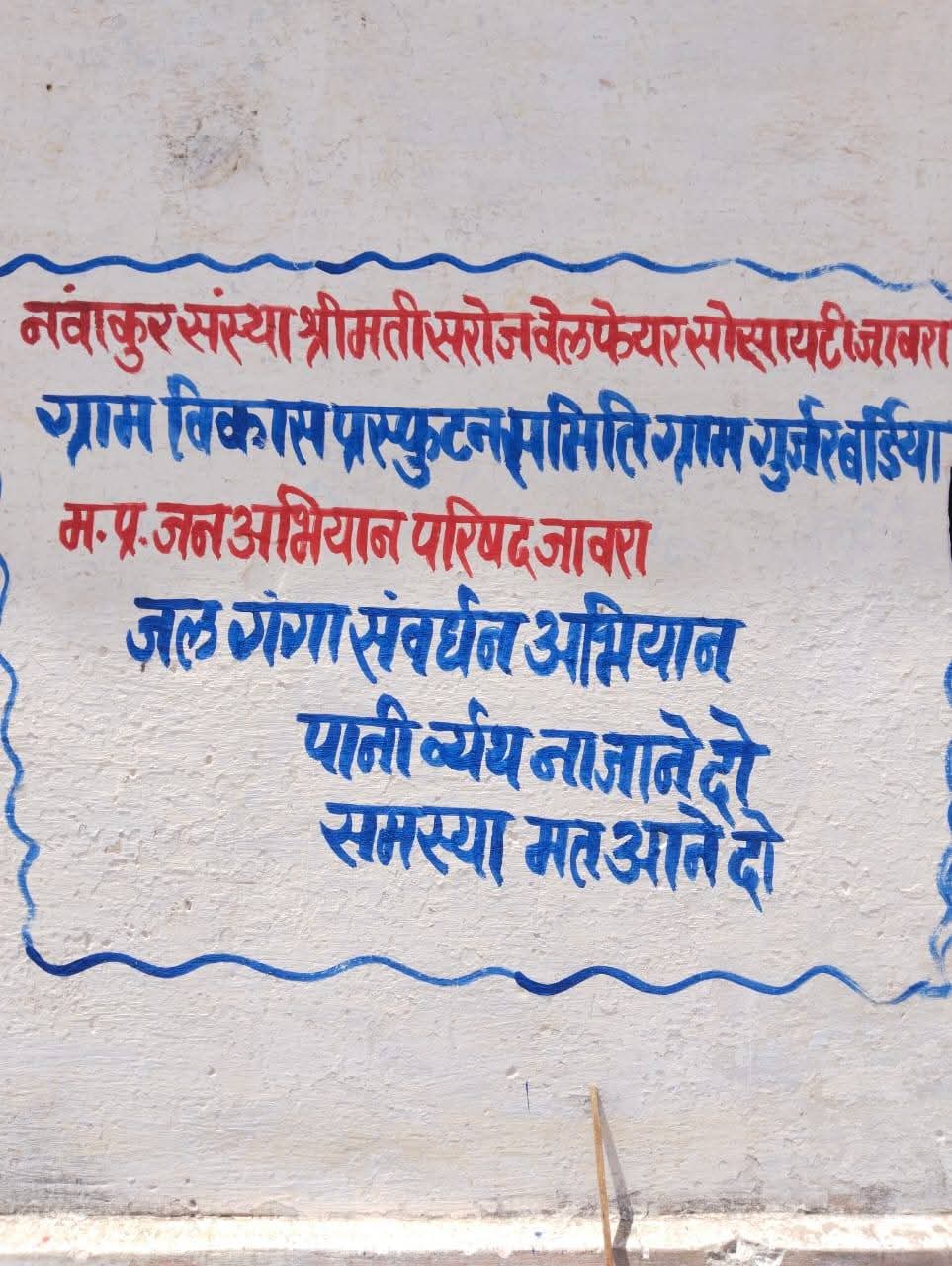 अभियान के तहत गांव में दीवार लेखन के माध्यम से जल संरक्षण से जुड़े प्रेरणा दायक स्लोगन लिखे गए। इसका उद्देश्य ग्रामीणों को जल बचाने और उसके सतत उपयोग के प्रति जागरूक करना है। दीवारों पर लिखे स्लोगन में “जल ही जीवन है”, “पानी बचाओजीवन बचाओ” जैसे संदेशों के माध्यम से लोगों को पानी की महत्ता बताई गई।