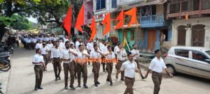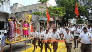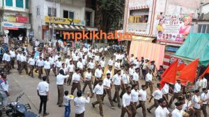 सैलाना नगर में आर.एस.एस (RSS) का भव्य पथ संचलन, स्वयं सेवकों का पुष्प वर्षा से जगह-जगह कि उत्साहवर्धन