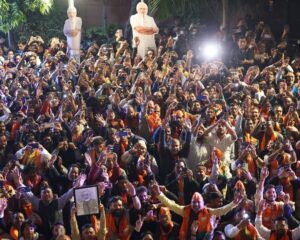 दिल्ली में जीत के बाद पीएम मोदी पहुंचे भाजपा पार्टी मुख्यालय पर