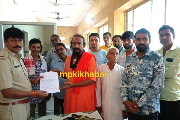 आनंद गिरि महाराज के नेतृत्व में ग्रामवासियों ने सैलाना थाना प्रभारी को लिखित में सौंपा आवेदन