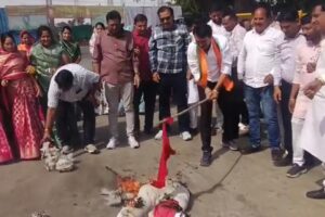 रतलाम निगम सम्मेलन में हंगामा: भाजपा ने पार्षद बागवान का पुतला फुका